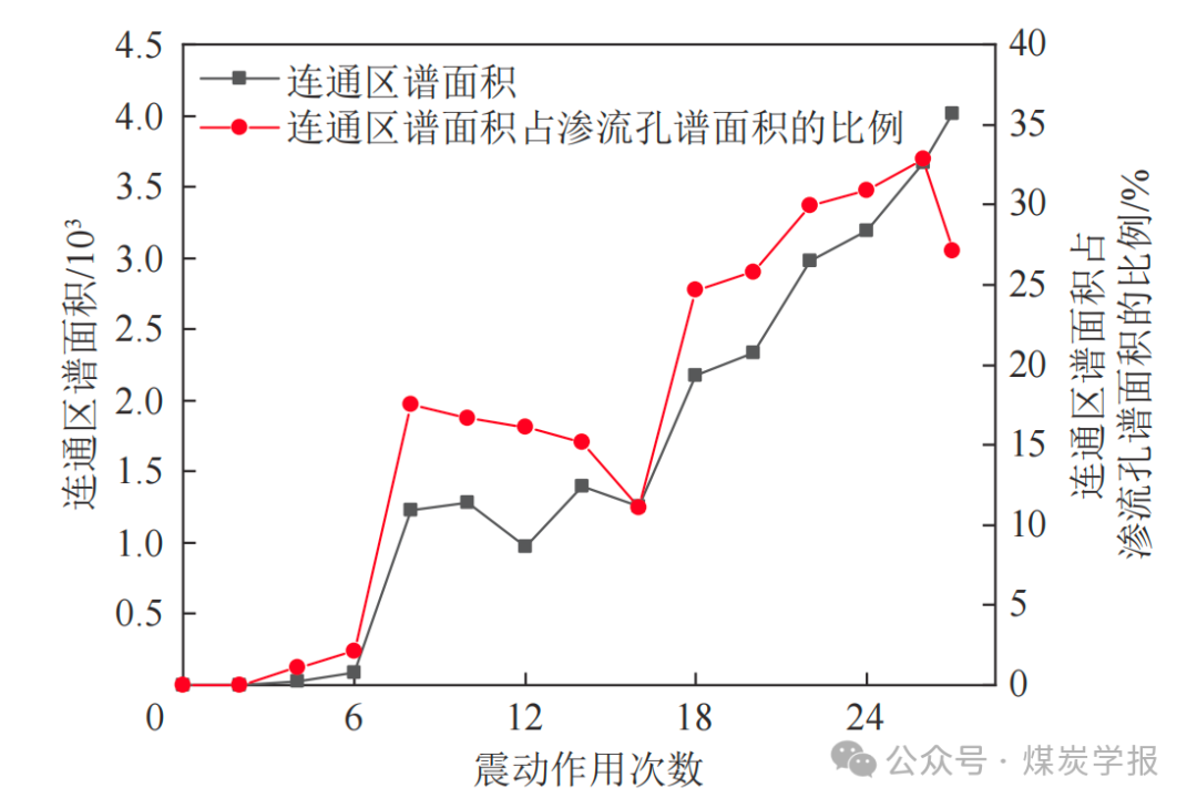 图 12 连通区谱面积及其占渗流孔谱面积的比例变化