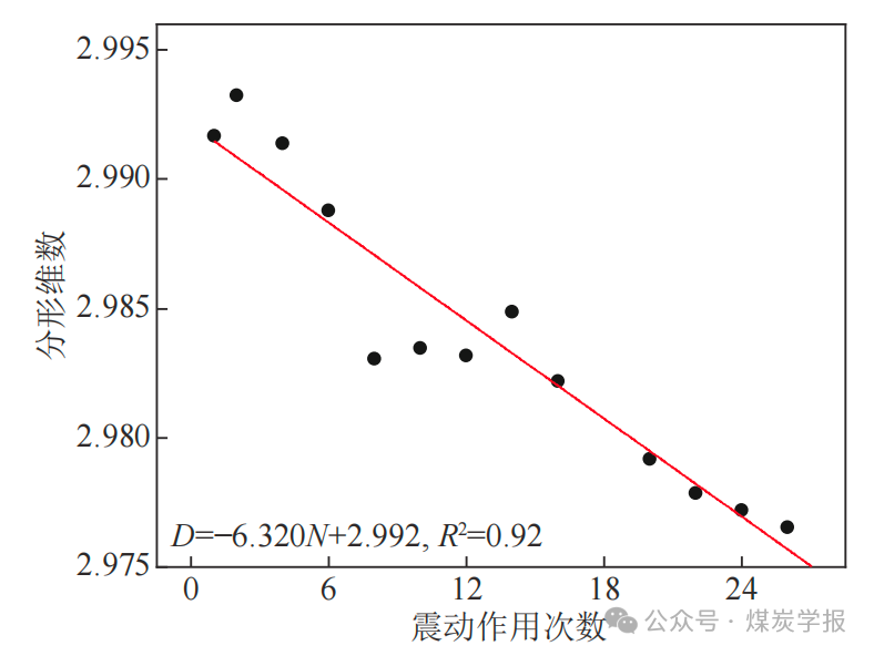 图 15 震动载荷冲击下渗流孔分形维数