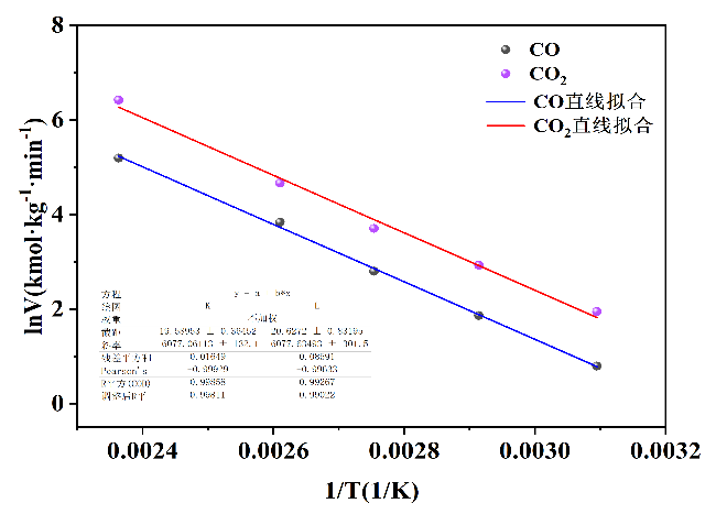 (2) 氧化产生的CO和CO2的活化能相等,表明它们来源于同一种中间产物。