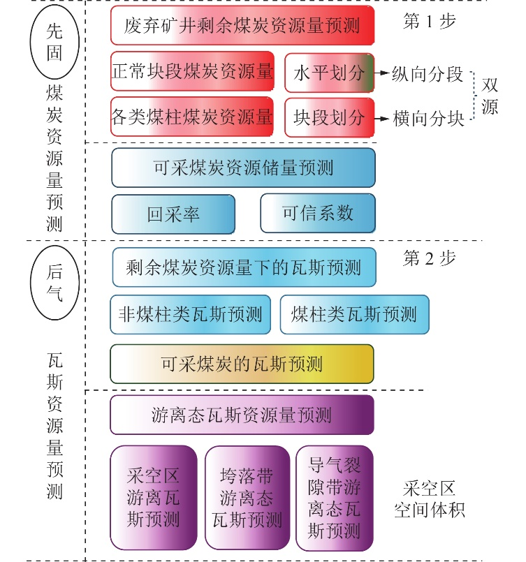 废弃矿井瓦斯资源开发利用对当前社会发展具有现实意义,针对废弃矿井瓦斯资源量的评估,通过分析废弃矿井瓦斯的储集空间和含量特征,发现邻近上下采空区覆岩垮落裂隙空间分布形态近似2个“上下串联梯形体”;构建了“先固后气−双源分步”理念(首先分水平、分块段预测剩余煤炭资源量和可采煤炭储量;其次利用分水平、分块段的煤炭资源量结合煤层瓦斯含量,预测瓦斯资源量)的废弃矿井瓦斯资源量评估模型和方法。对淮南潘一矿废弃矿井13个可采煤层进行了剩余煤炭资源量、可采煤炭储量和瓦斯资源量的分水平、分块段的评估,采空区游离瓦斯资源量采用瓦斯卸压运移“新三带”理论,获得了13–1煤层部分采空区工作面的采空区、垮落带、导气裂隙带的游离态瓦斯资源量,研究成果为废弃矿井瓦斯资源利用提供方向。