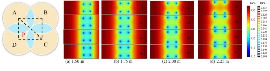 图20不同间距下“正方形”钻孔瓦斯压力云图