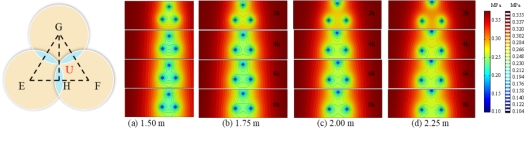 图21不同间距下“三角形”钻孔瓦斯压力云图
