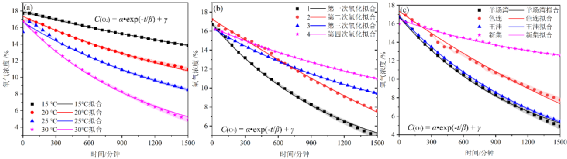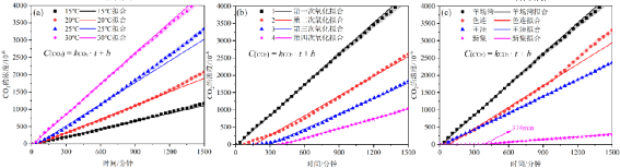 (3)得到了低变质煤常温氧化过程中含氧气体分子(O2、CO和CO2)浓度与氧化时间的数学模型,并分析了影响反应速率的关键因素。