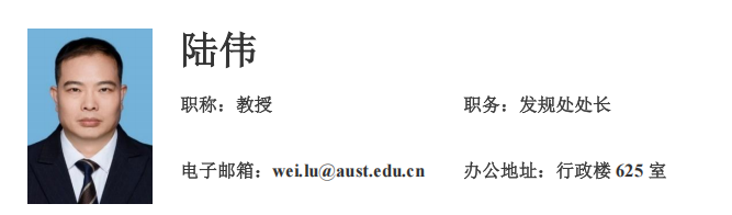 陆伟,1977年5月生,四川广安人,中共党员,教授,博导,安徽理工大学发展规划处处长、学科建设办公室主任、高教研究所所长。长期从事煤矿安全,从基础理论、防治方法到应用实践等。荣获及入选全国先进工作者、国家重大人才工程项目、国务院政府特殊津贴、国家级一流本科课程、安徽省杰出人才(教工委)、安徽省“特支计划”、安徽省“优秀教育工作者”、首届“安徽卓越工程师”称号,全国“最美煤炭科技工作者”、安徽省“高水平导师”、安徽省“优秀导师团队”(负责人)、安徽省“优秀教学团队”(负责人)、煤炭行业“优秀教学团队”(负责人)等。
