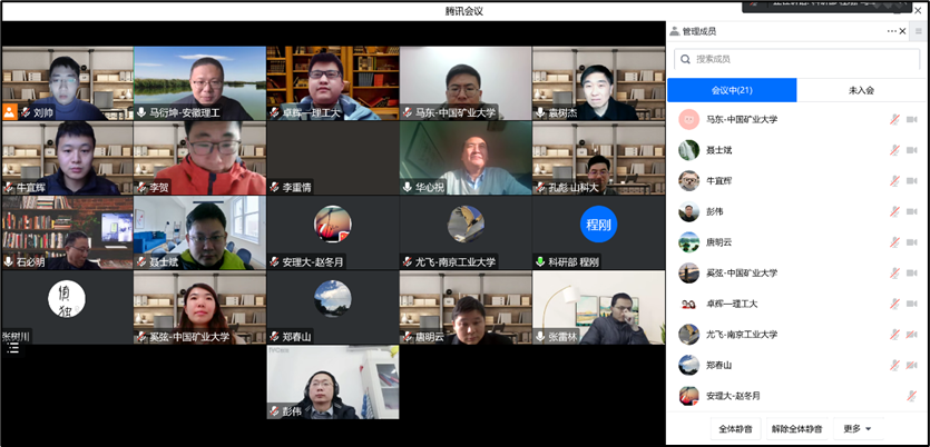 研究中心执行主任马衍坤教授向各位专家及开放课题负责人汇报了2022年度开放课题的申请、函评和会评情况,要求各位负责人务必严格按照开放课题管理办法和申请指南的要求,认真开展研究工作,完成研究目标和考核目标。他提出,每位课题负责人都要在研究周期内来安徽理工大学开展一次学术报告,加强学术交流。